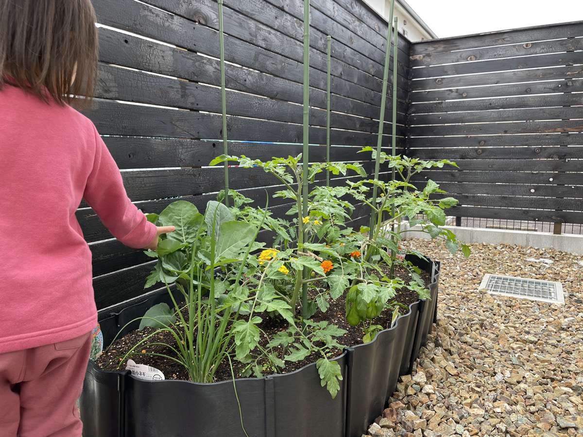 このコンポストで作った堆肥は、家庭菜園にしっかり活用。