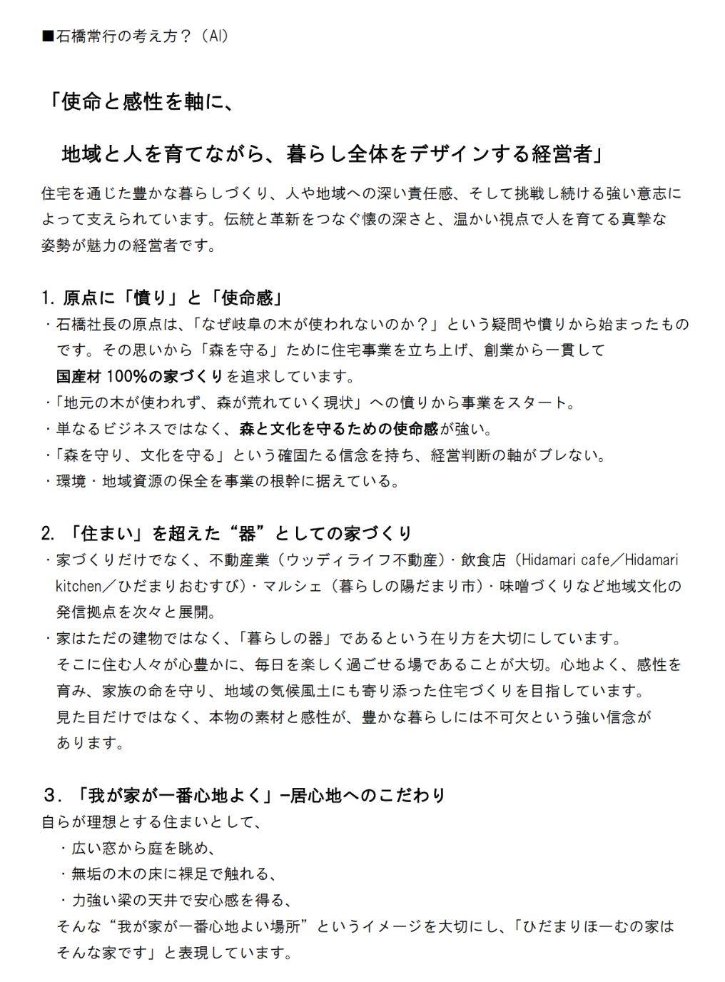 AIに僕自身の経営スタイルを尋ねると、中々よくまとまっていました。