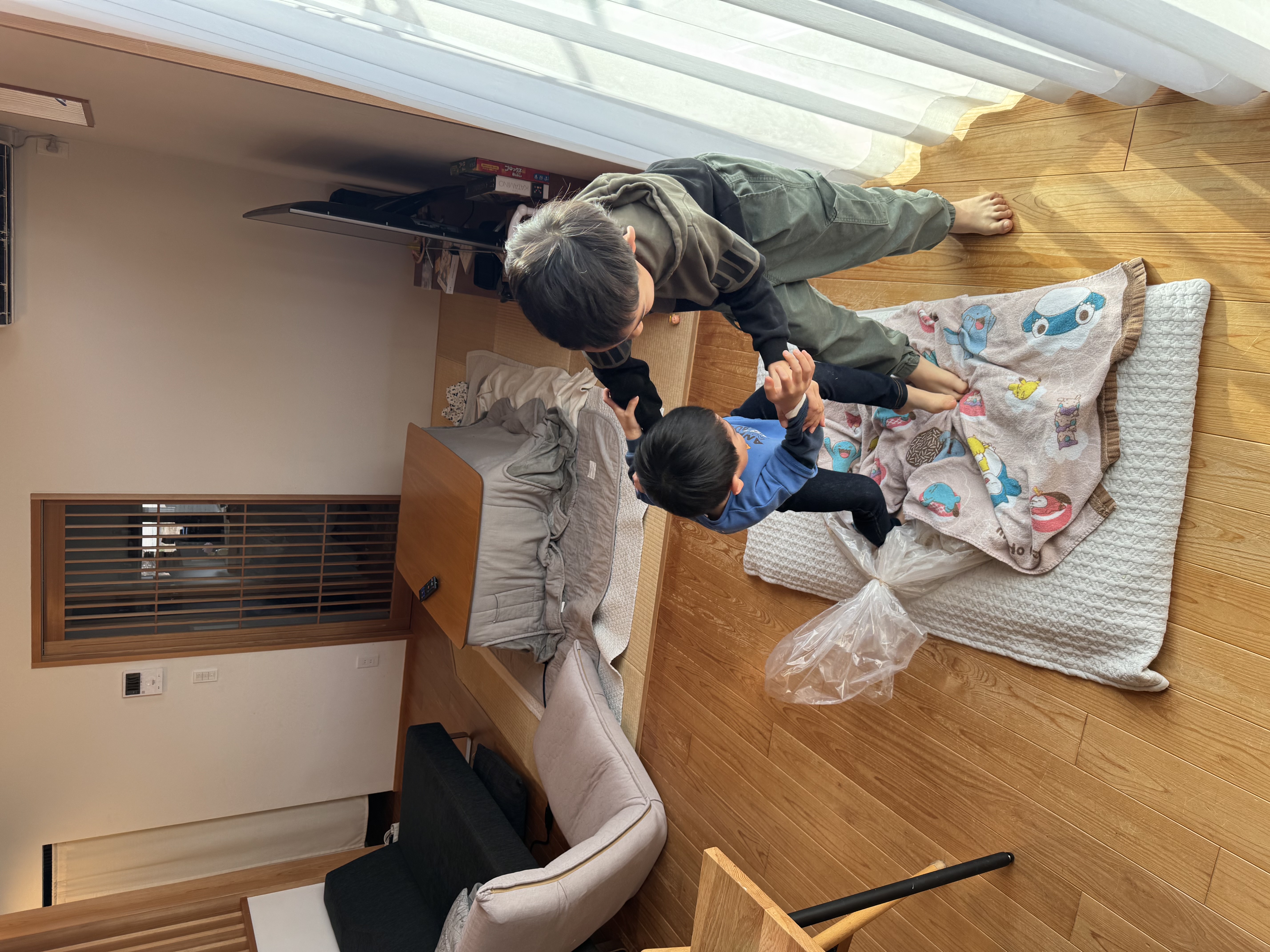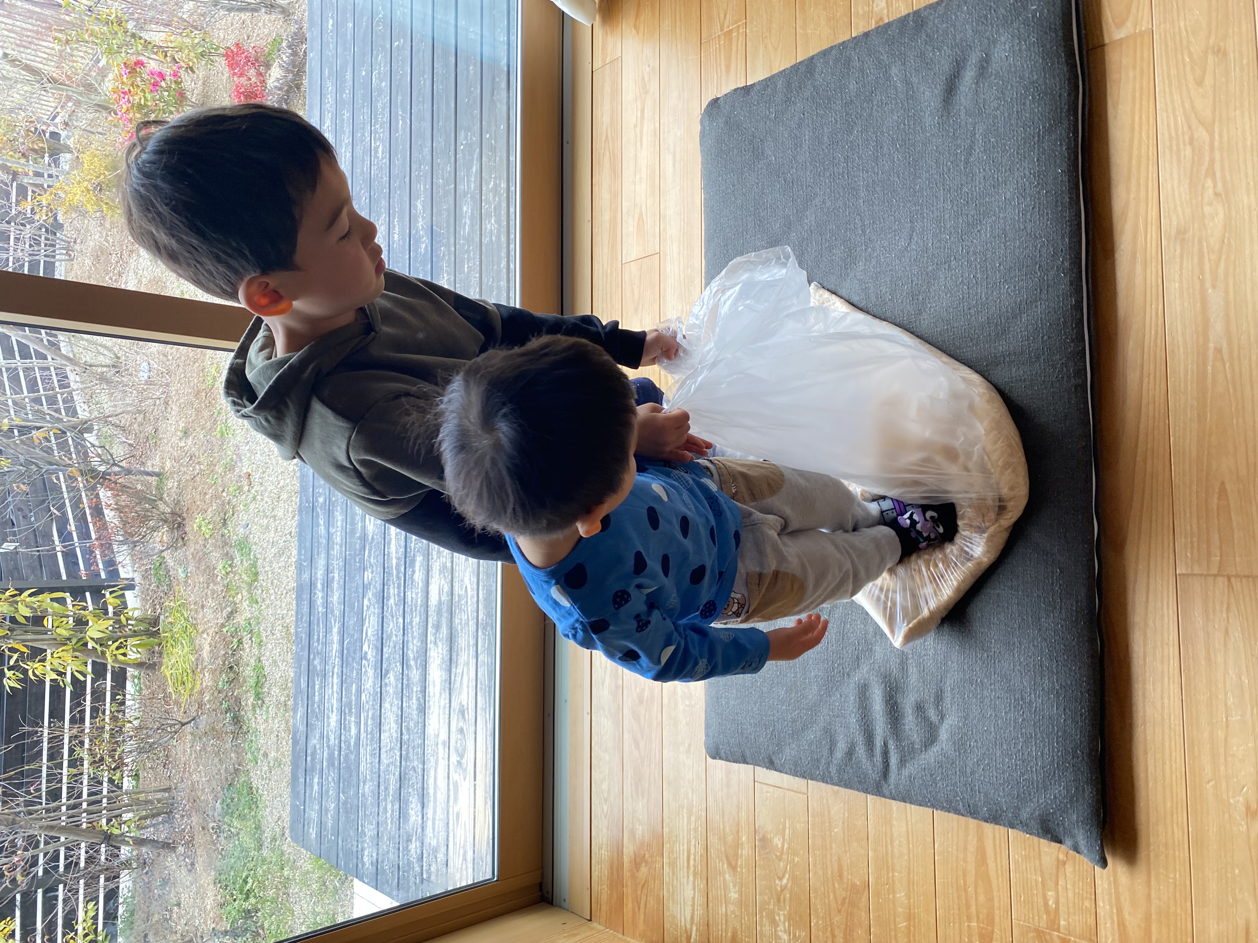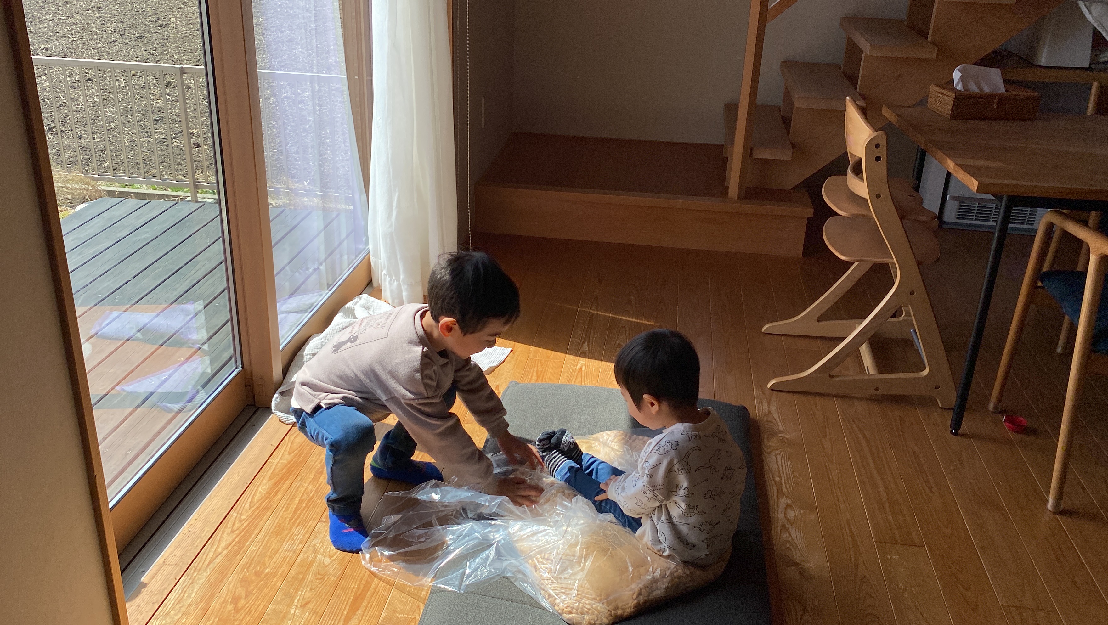 夫婦+小学生2年生男子、年中男子の4人でひだまりのお家で暮らしています。