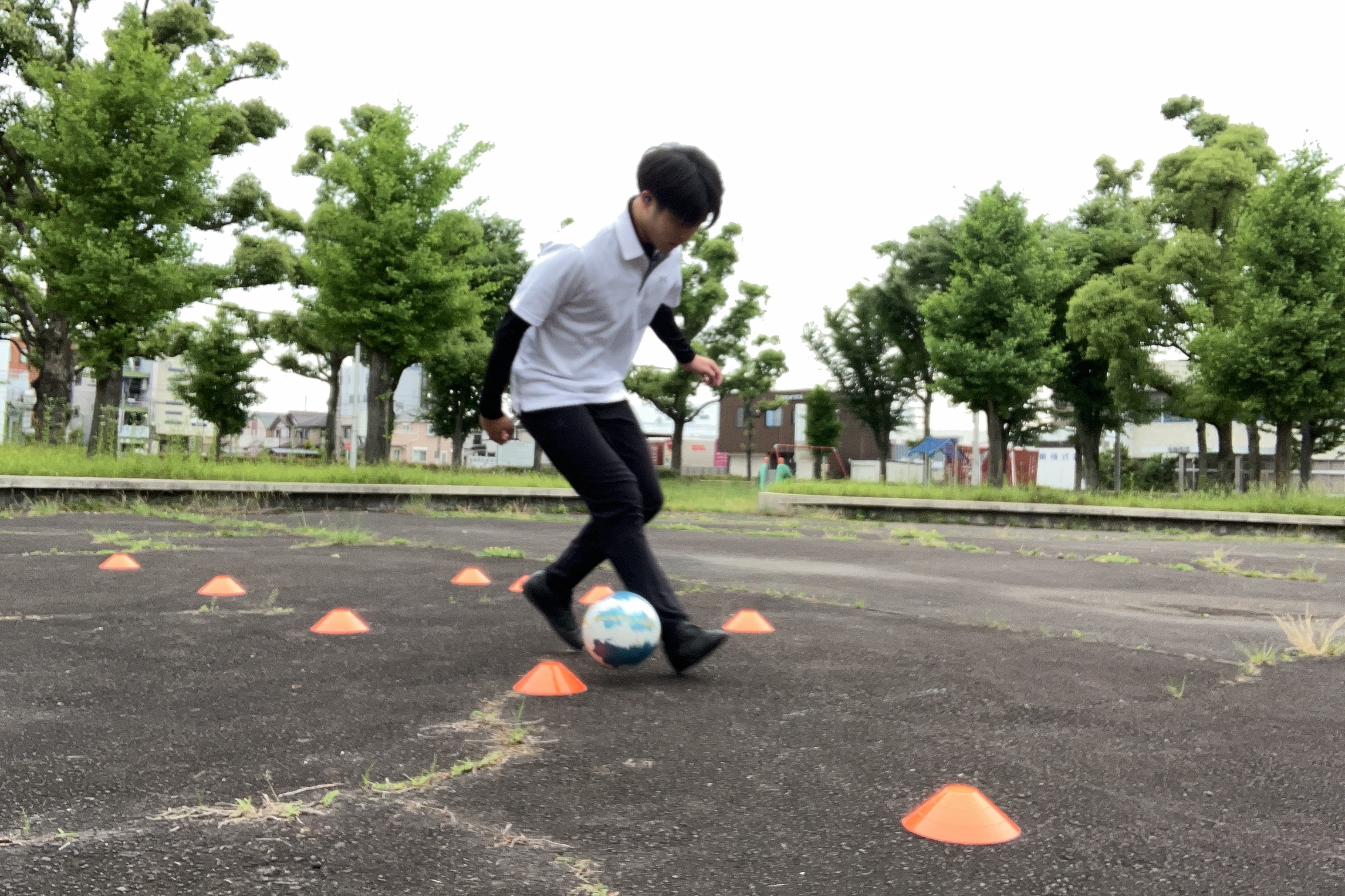 最近の楽しみは、マーカーを使ったドリブル練習!