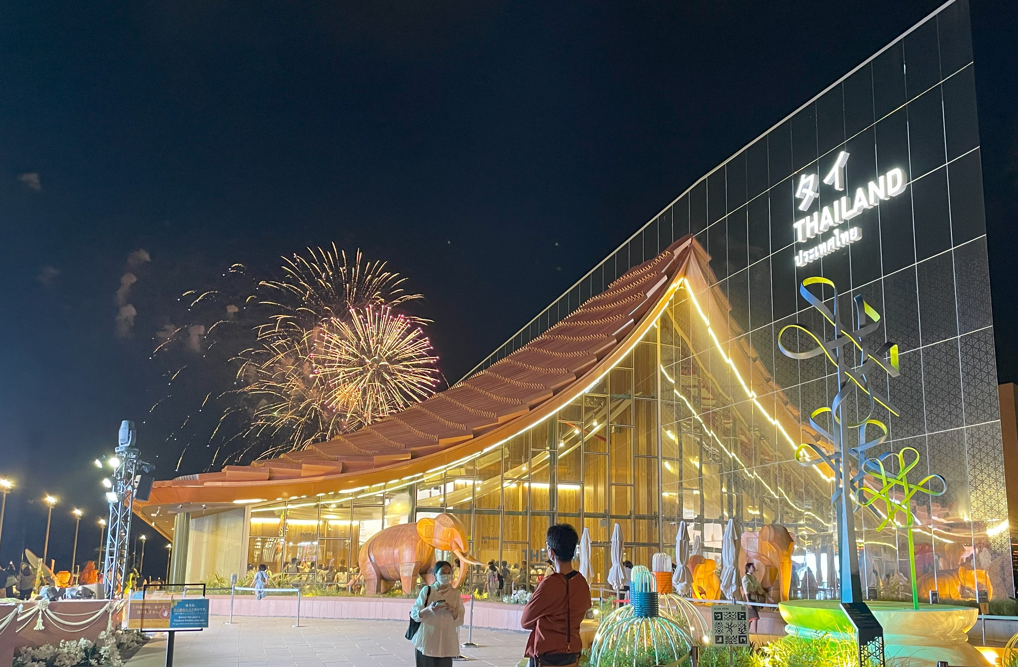 万博でのタイパビリオン越しの花火もおすそ分け!