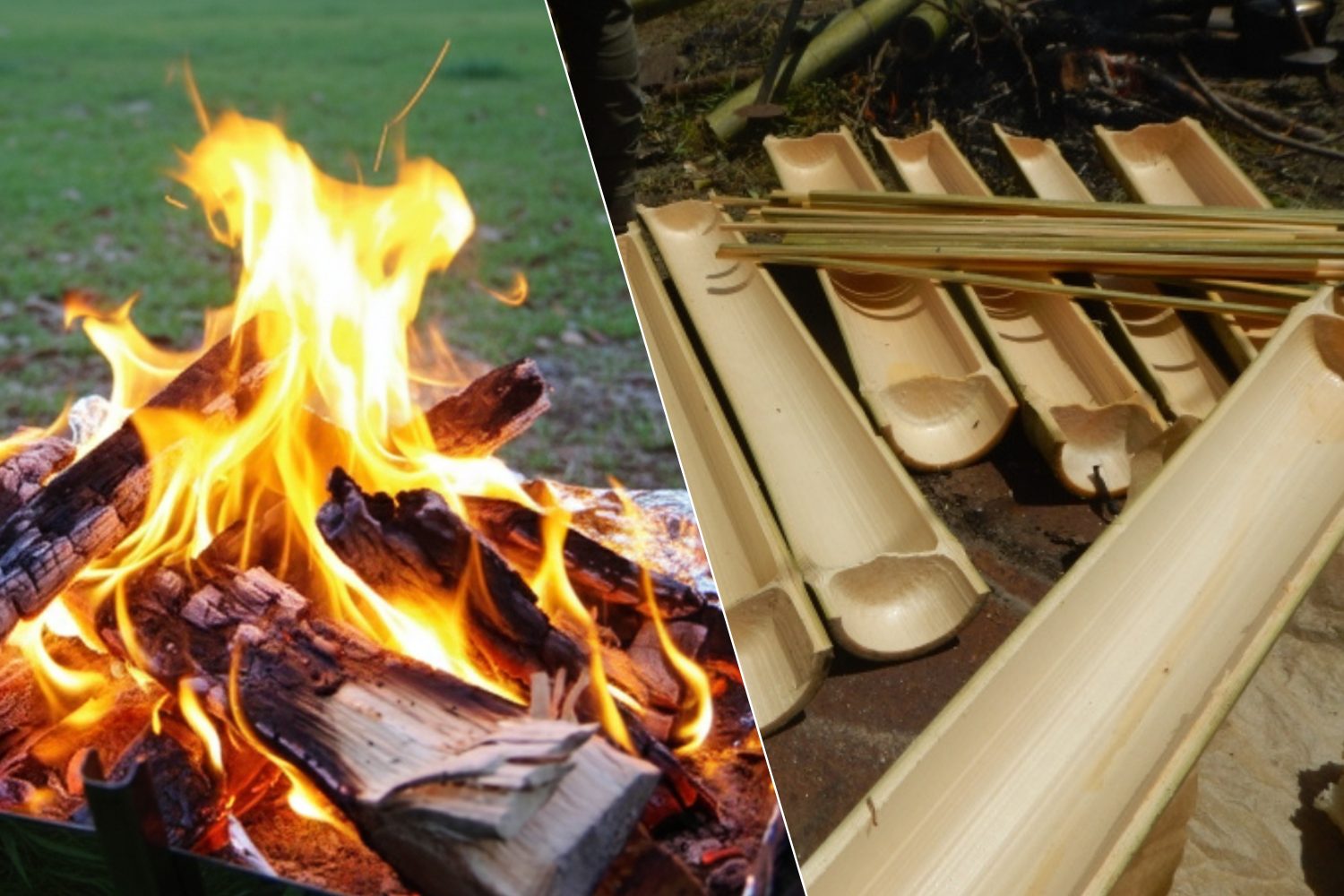 昔ながらの火起こしに挑戦!竹を使った工作体験では、オリジナルのコップや箸を制作!