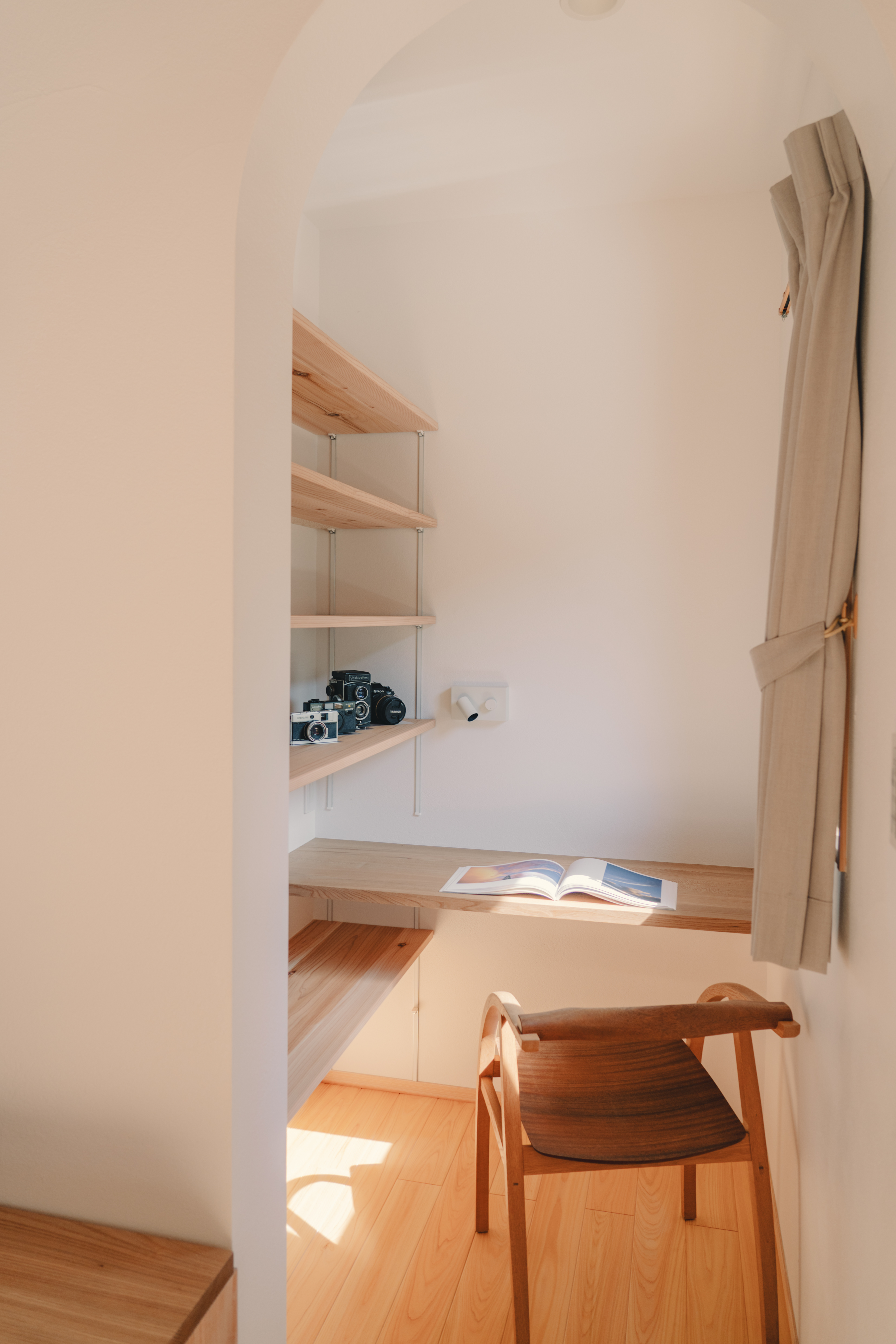 隣接する奥様用のスタディコーナーも、この心地よい光の中で仕事や読書に集中できる特等席です。