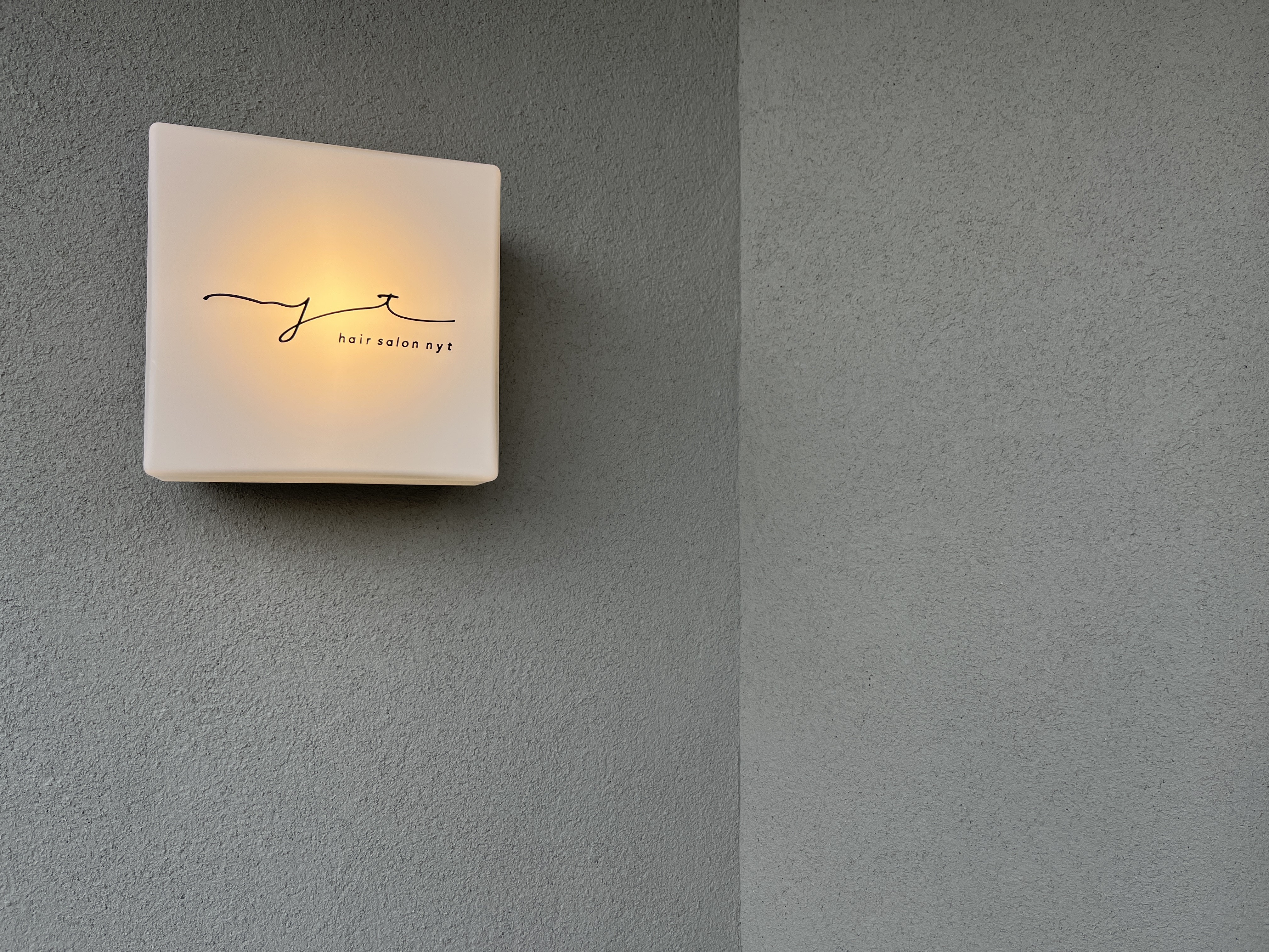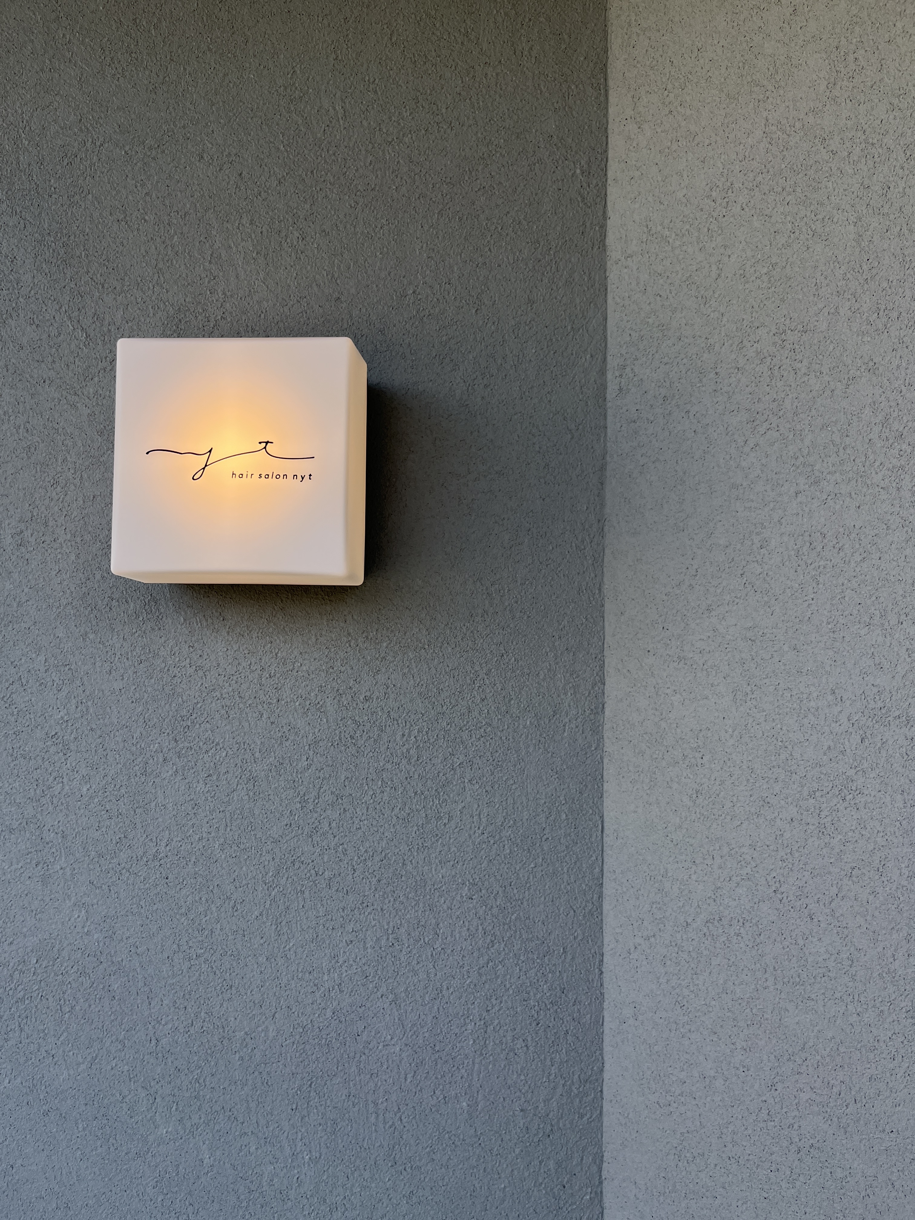 店名が刻まれた照明が、お客様を迎えるさりげないサインになっています。
