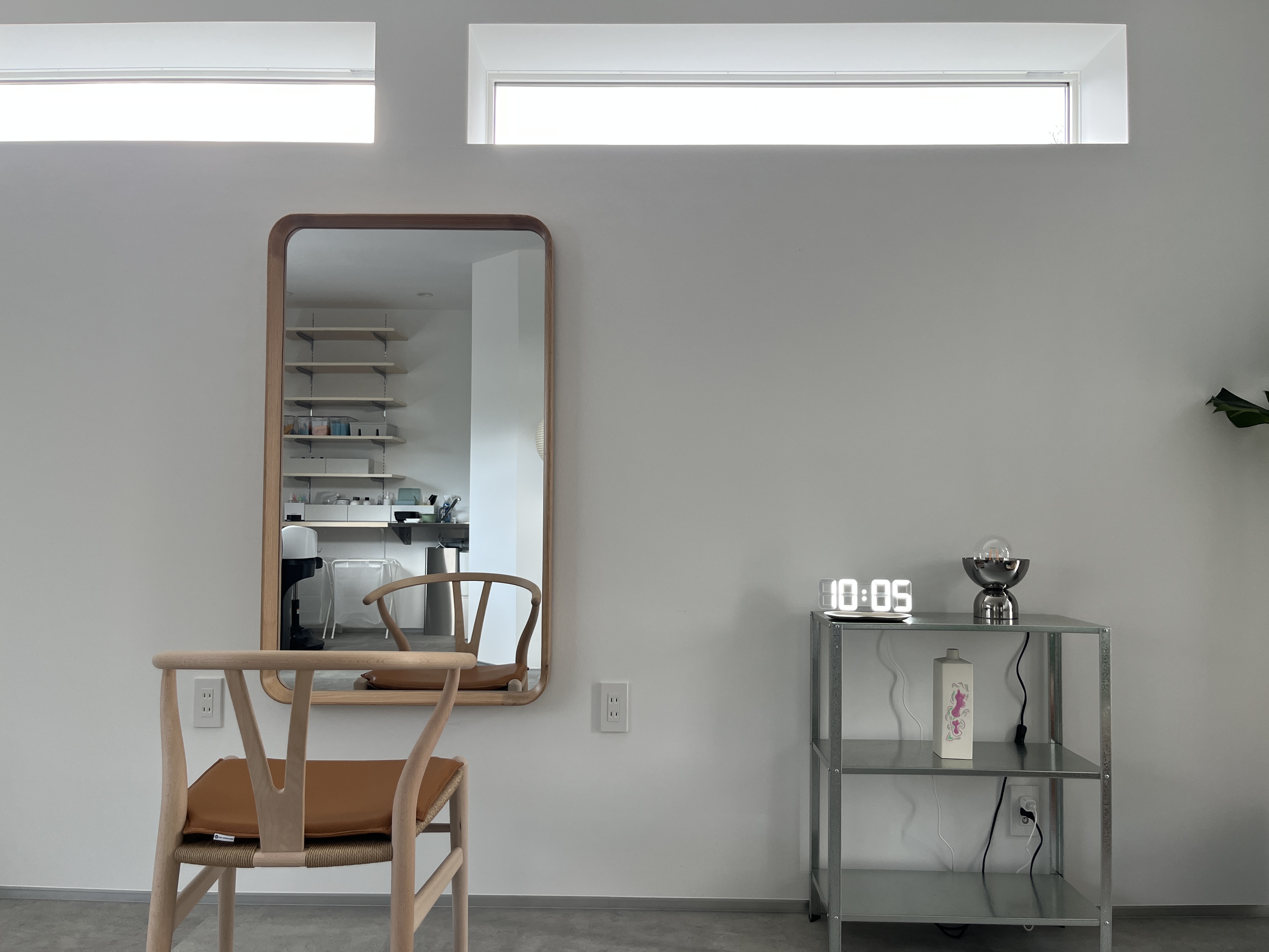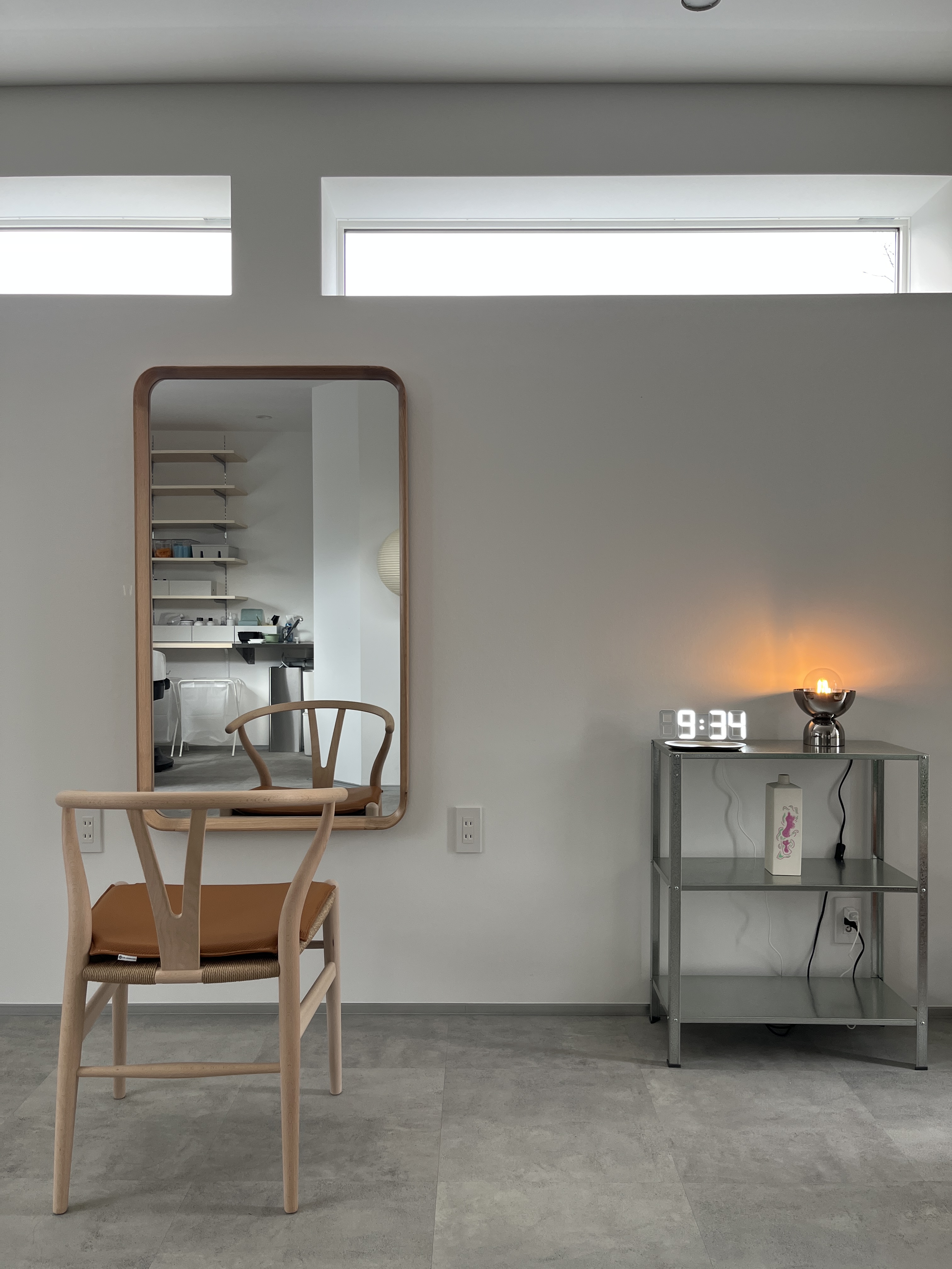 鏡や椅子、照明、小物など、お客様が丁寧に選び抜いたアイテムが、空間のアクセントとして引き立ちます。
