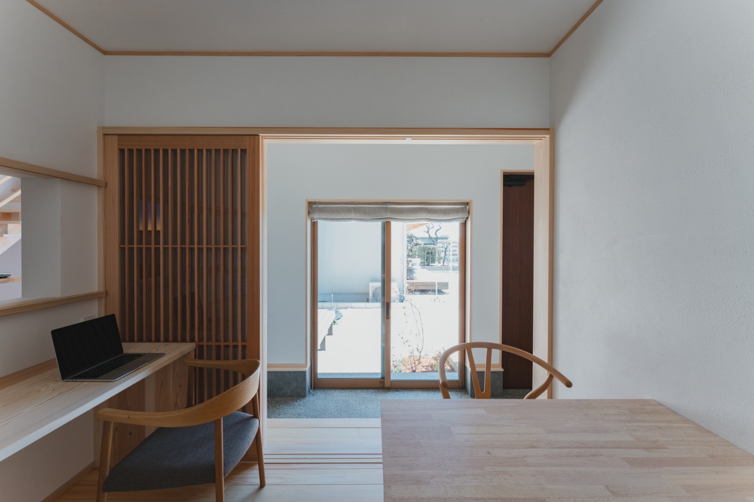 土間を介して仕事場や居住スペースへと動線が分かれ、毎日の動きが自然と整います。