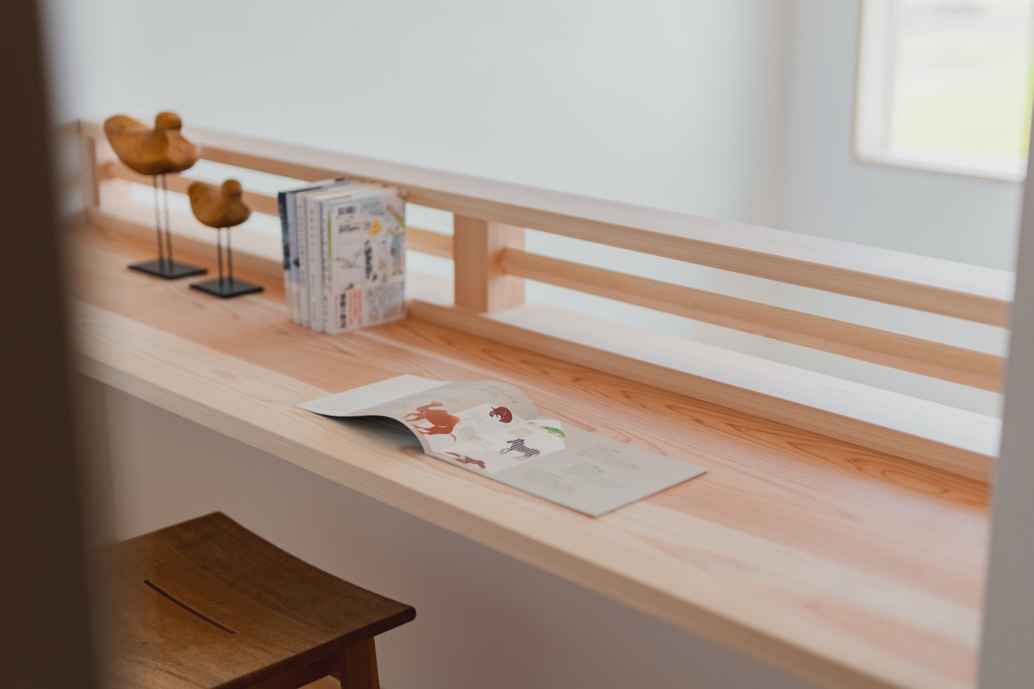 2階には吹き抜けに面したスタディカウンターを設け、頑張るお子さんの様子をそっと感じられる配置に。